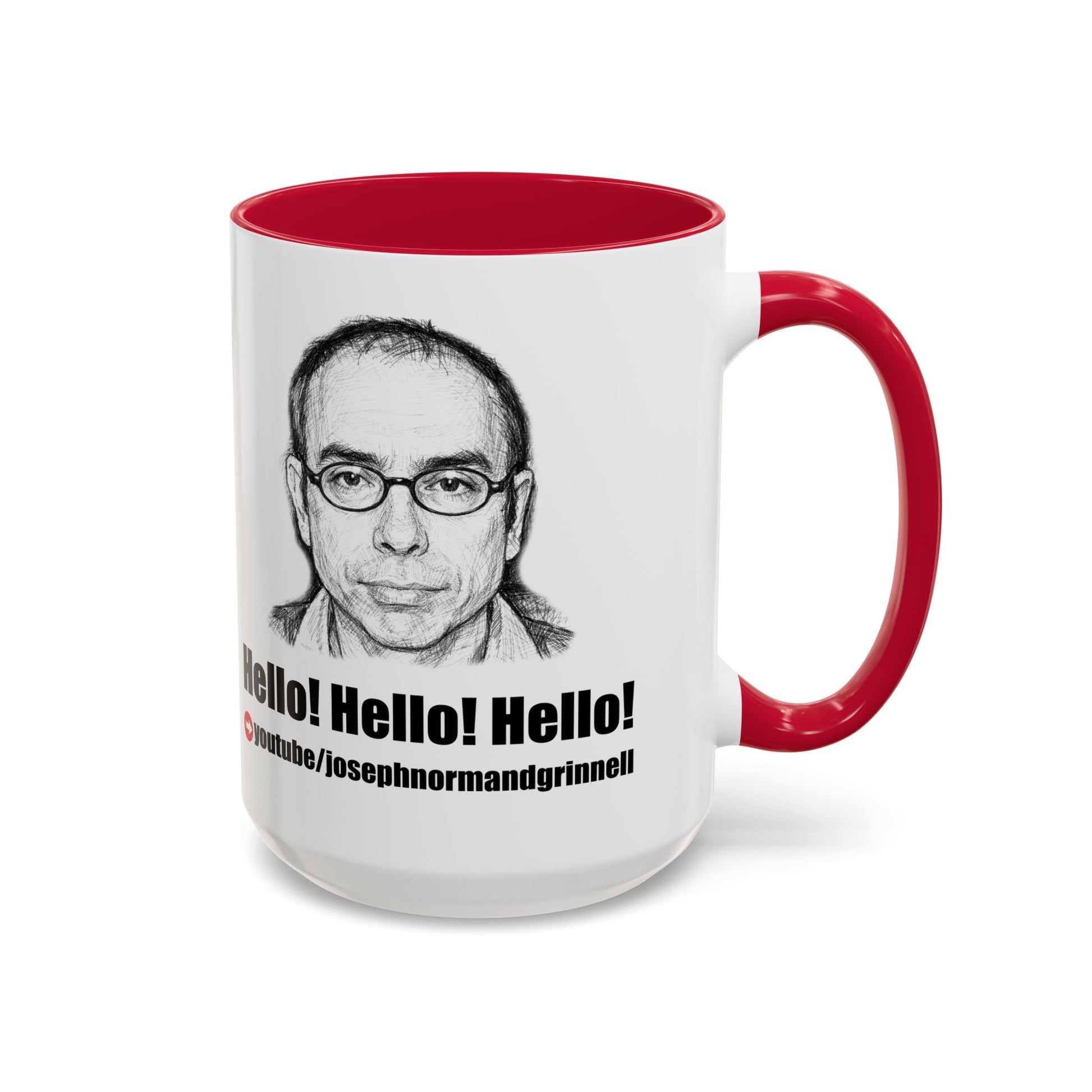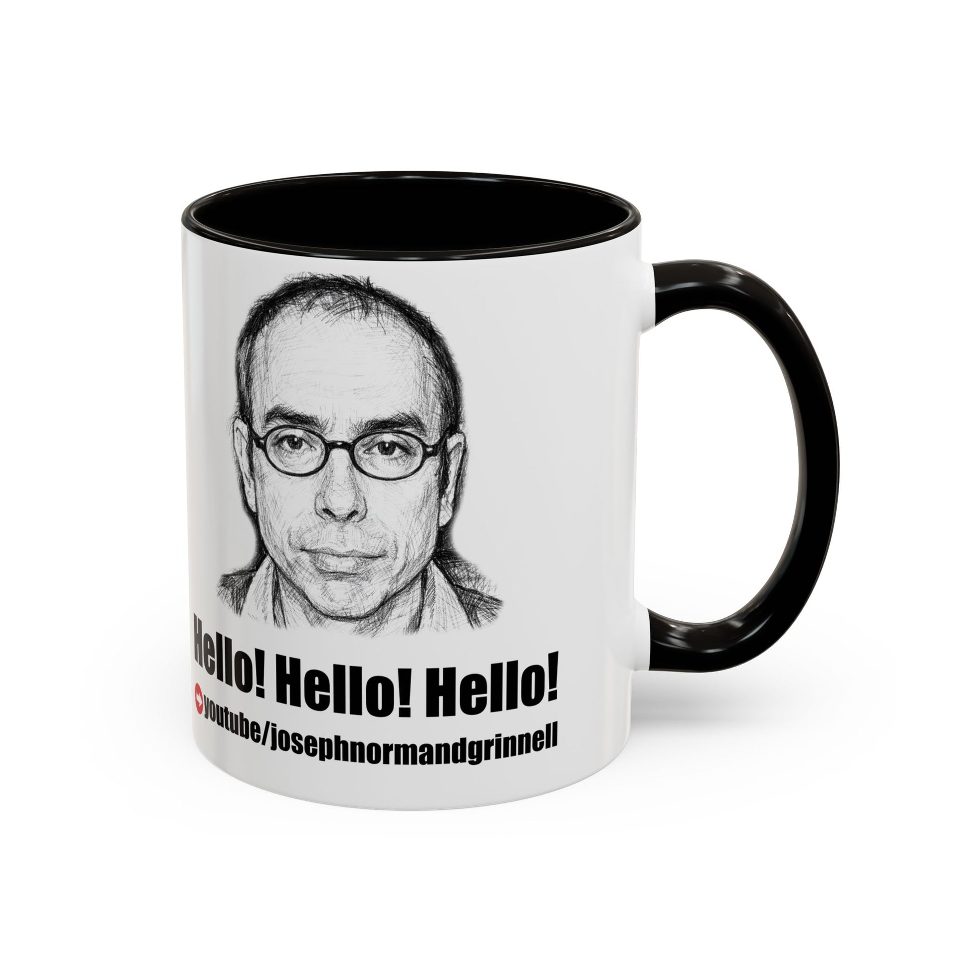 Show your support for Joseph Normand Grinnell, your favorite YouTuber! This 11oz or 15oz ceramic mug brings his touch of bold, graphic personality to everyday routines. Bright, high-contrast artwork wraps the glossy white surface and pops against a colored handle and interior — choose from a dozen accent hues to match your kitchen or desk. The sturdy C-shaped handle feels comfortable in hand; the ORCA-coated finish keeps the print vibrant through daily use. Dishwasher- and microwave-safe, this mug stands up to morning coffee, afternoon tea, and late-night creativity sessions without losing its color or shine. It’s for people who enjoy a little art with their caffeine and want a mug that looks deliberate on the counter or shelf.