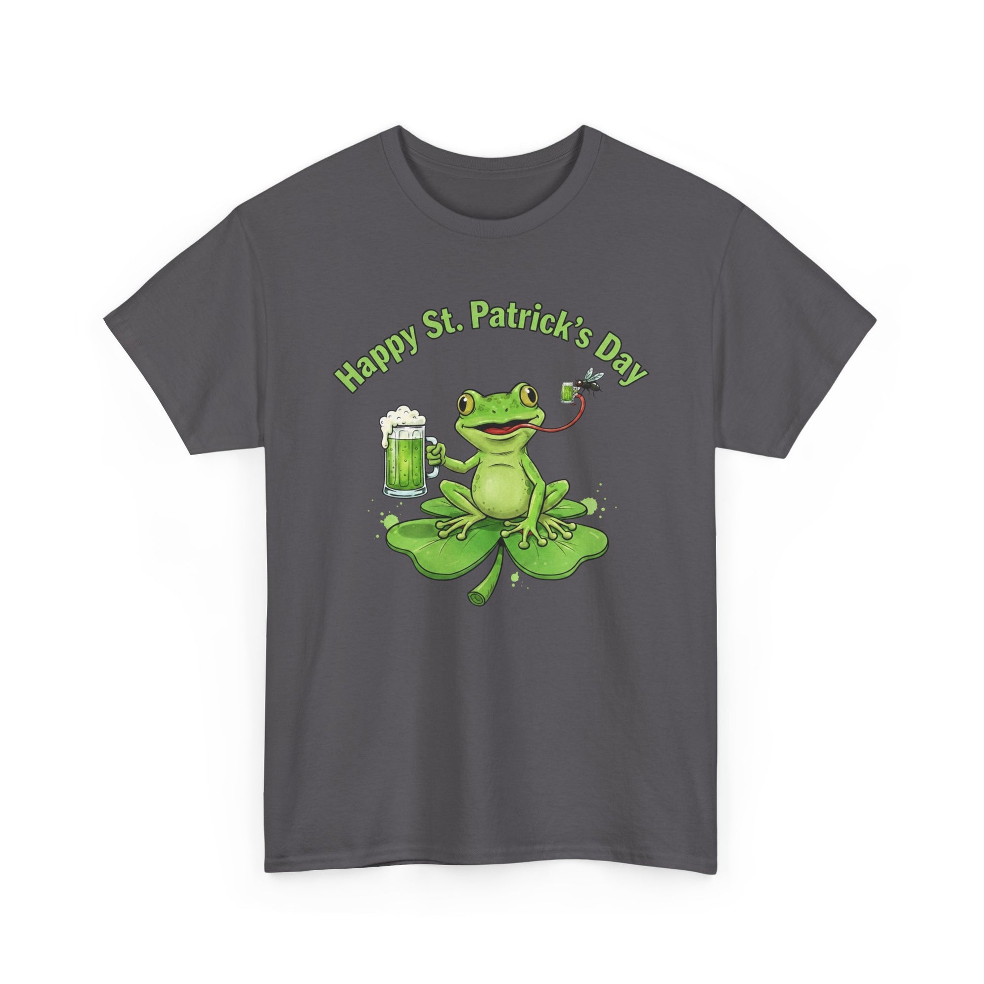 A soft, classic crew tee made to carry a playful St. Patrick’s vibe. The shirt features a cheerful frog perched on a four-leaf clover, lifting a frothy green drink with a wink. Lightweight but durable cotton gives this tee a breathable, lived-in feel — the kind you reach for when you want to join a laid-back celebration or add a splash of charm to an otherwise simple outfit. The print uses crisp DTF/DTG techniques so the green tones stay bright and detailed wash after wash. Wear it to neighborhood pub nights, casual parades, or quiet afternoons spent with friends and you’ll notice how the small, whimsical design sparks smiles and conversation.